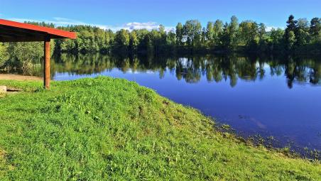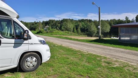 Wir fahren die E16 in nördlicher Richtung. Doch dann sehen wir bei Björby ein Hinweisschild zu einem Stellplatz. Dazu verlassen wir die E16 und fahren nun Nebenstrecke (heißt: Schotterpiste) weiter. Die Straße führt an dem Fluss "Klarälven" entlang, an dem auch der eigentliche Stellplatz liegen soll.