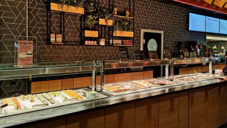 Also parken wir auf dem riesigen Gelände von diesem Einkaufszentrum um und steuern einen größeren Supermarkt an. Vielleicht haben wir hier Glück ... der Supermarkt ist aber nur ein Glied in der Kette der vielen Geschäfte hier, so kommen wir im Innern dann zu einem Asiaten (Link), der leckeres Buffet anbietet.