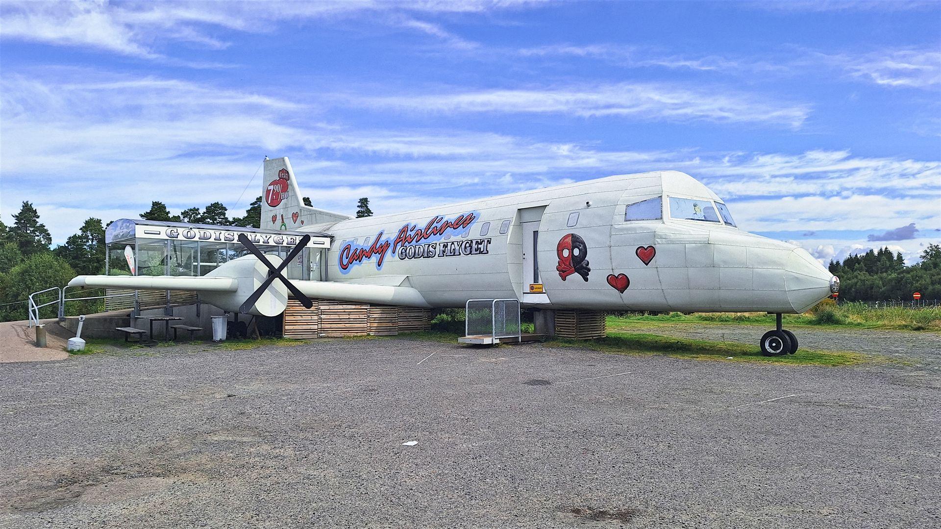 Bei "Skånes-Fagerhult" biegen wir ab ... hier steht ein richtig süßes Flugzeug herum ... von der "Candy Airlines" (Link) ... auch "Godisflyget" genannt. Uns wird klar ... hier waren wir schon einmal vor vielen vielen Jahren ... aber wir haben definitiv nicht mehr gewusst, wo das war. Jetzt haben wir es also erneut gefunden.