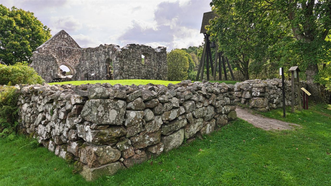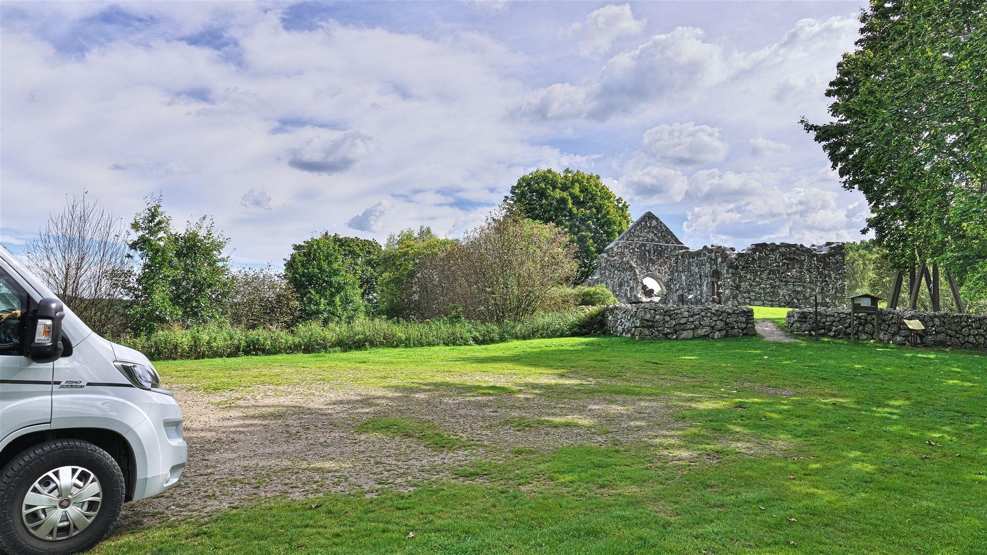 Etwa 25 km weiter sehen wir den Hinweis auf die "Rya Kyrkoruin" (Link) ... also eine Kirchenruine. Das spricht uns ganz deutlich an mit unserem Fabel für alte Steine *grins*.