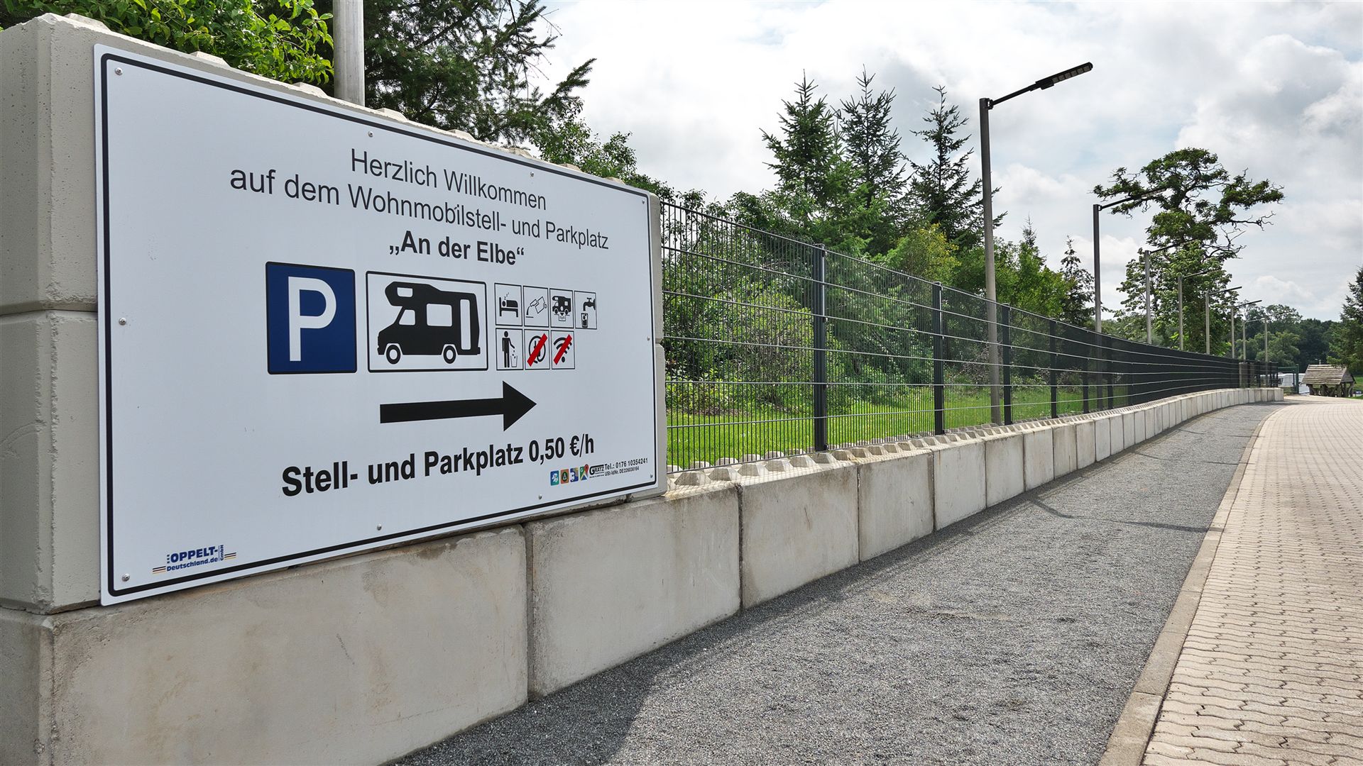 Alles läuft planmäßig. So kommen wir recht entspannt gegen 11:40 Uhr wohlbehalten am neuen Stellplatz neben der "Marina Coswig" an, dieser nennt sich "Stellplatz an der Elbe" (Link).