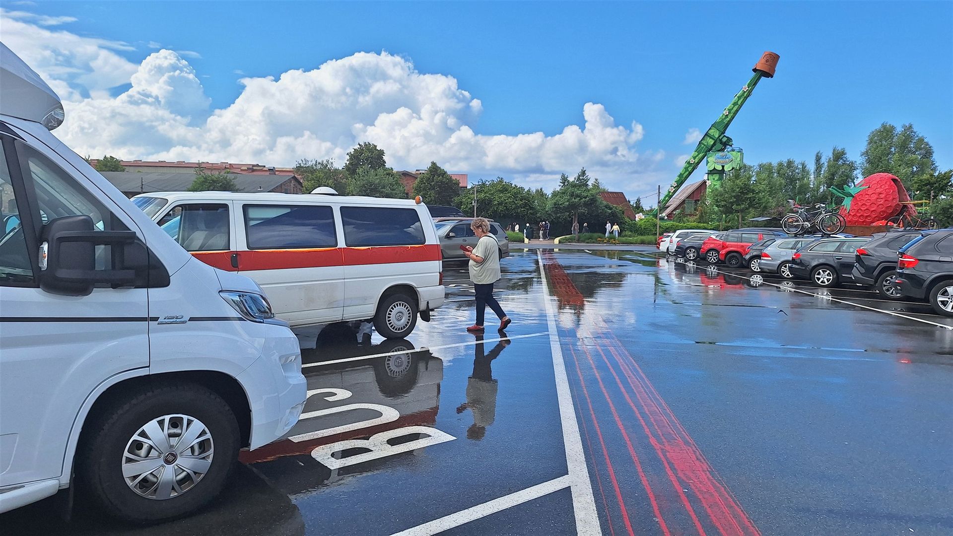 Letztendlich erreichen wir kurz vor 14 Uhr den Parkplatz vom "Karls Erlebnis-Dorf" (Link) in Rövershagen. Die Parkplätze auf der Wiese sind total matschig, aber wir haben Glück und bekommen im geteerten Bereich einen Parkplatz.