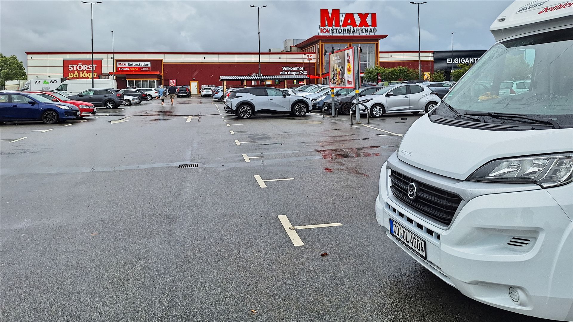 So fahren wir den Parkplatz an einem Einkaufszentrum (Link) an. Hier, so stellen wir es uns vor, sollte eine sichere Übernachtung möglich sein. Vor uns liegt die Nacht von Samstag auf Sonntag, da entfällt auch der morgendliche Berufsverkehr.