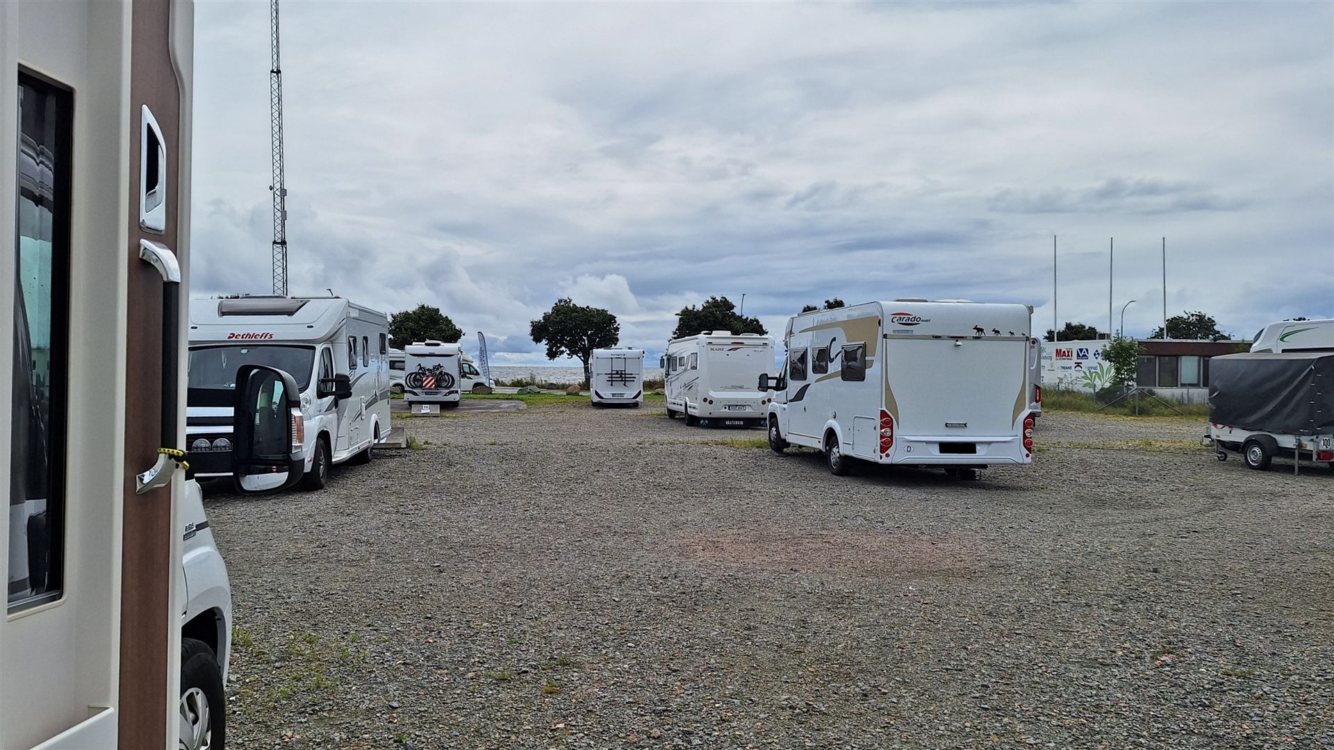 Irgendwie haben wir heute keine Lust, noch groß irgendwo hin zu fahren. Deswegen buchen wir uns auf dem "Ställplats Trelleborgstrand" (Link) ein, den wir ja auch schon öfters besucht haben. Es ist ein Platz mit Meeresblick ... zumindest ein bisschen *lach*. Gerade leise ist dieser Platz auch nicht, aber irgendwie stört uns das nicht ... ausnahmsweise natürlich !