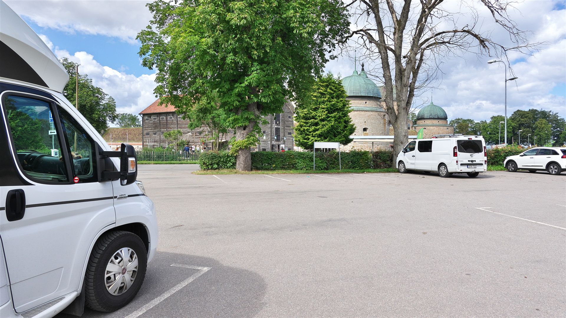 Im Ort Gränna angekommen fahren wir auf der E4 am Vättern See entlang in nördlicher Richtung. Bei Ödeshög ein kurzer Stopp für einen kleinen Einkauf im Supermarkt und schon geht es weiter bis nach Vadstena. Einen passenden und kostenlosen Parkplatz (Link) finden wir neben dem Lokschuppen (Link) der Museumsbahn mit Blickkontakt zum Vadstena Slott (Link) ... zentraler geht es fast nicht !