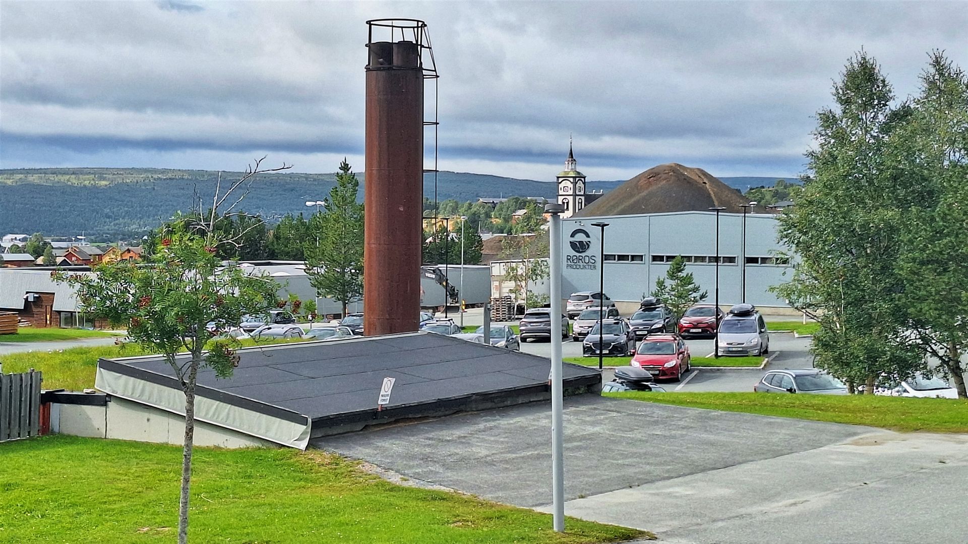 Vom "Parkplatz" aus starten wir unseren eigenen Stadtbummel durch die wunderschöne Stadt, die uns wiederholt super gefallen hat. Trotz des eingestellten Erzabbaus erinnert in Røros noch heute alles an die industrielle Geschichte der Stadt. So sind z. B. die Bergbauwerkzeuge Meißel und Schlägel am Glockenturm der Kirche von 1784 angebracht. Die Kirche zählt mit ihren über 1.600 Sitzplätzen zu den größten in ganz Norwegen. Auch dorthin wird uns unser Weg führen.