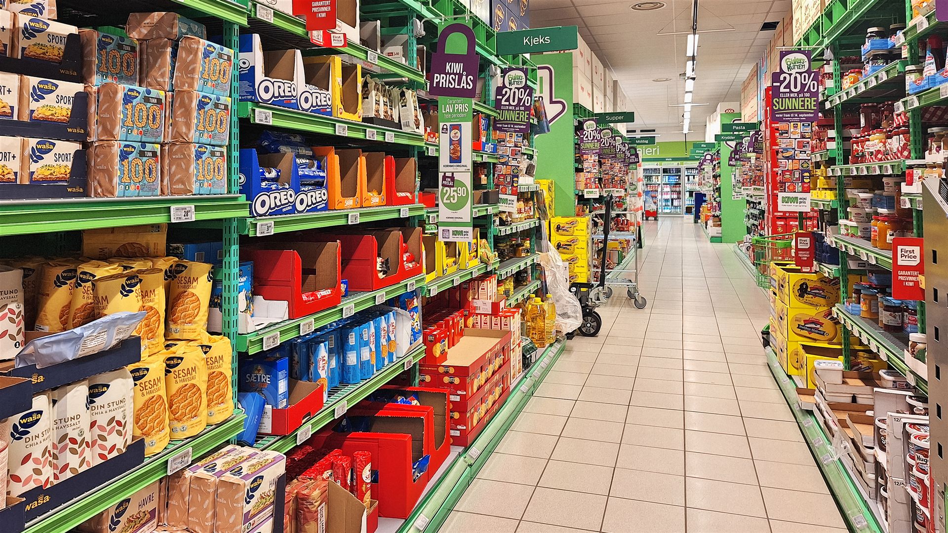 Wir sind zurück bei unserem Mr. Esprit und möchten noch schnell in einen Supermarkt reinschauen. Dazu müssen wir nicht weit fahren. Diese Supermarktkette ist in Norwegen weit verbreitet und hat vergleichsweise günstige Angebote. Trotzdem liegen die Preise über dem deutschen Niveau.