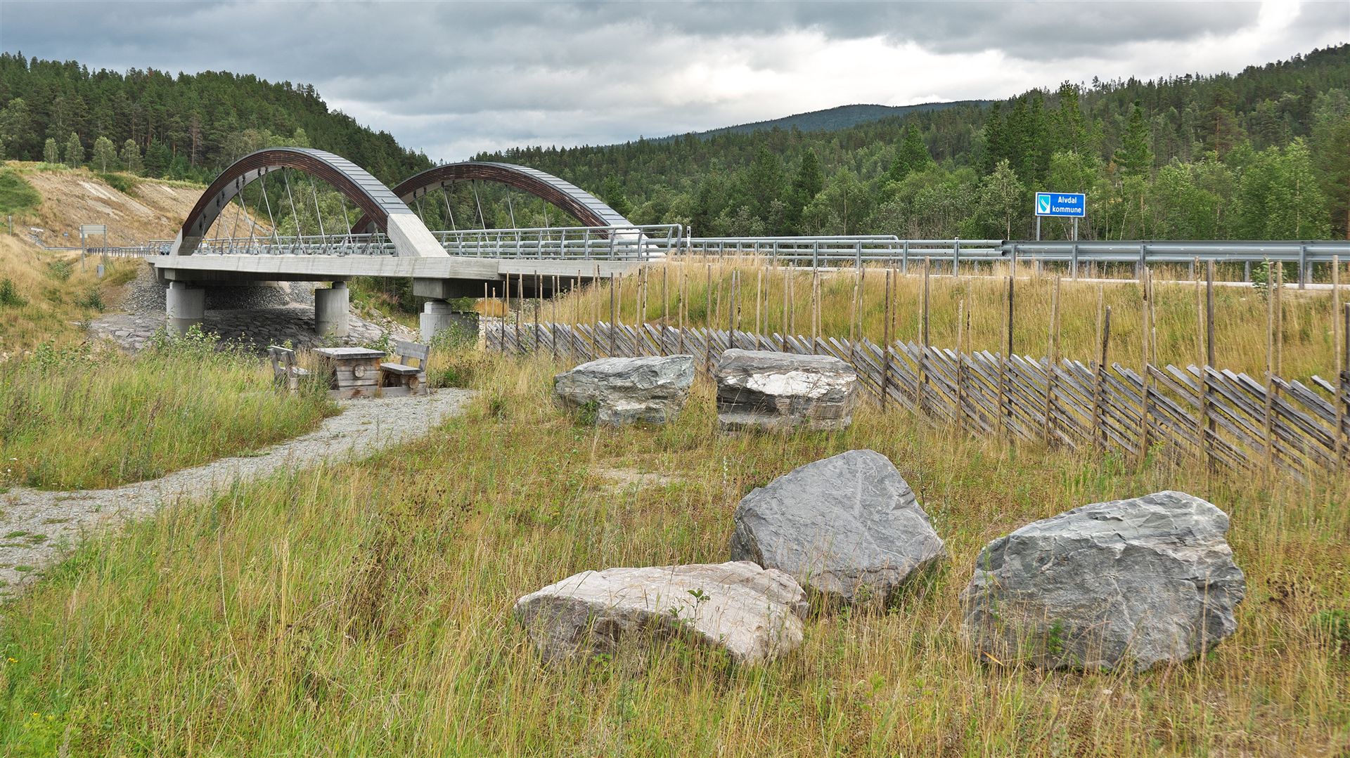 Das nächste Ziel ist eine Brücke, etwa 63 km entfernt (siehe "Route"). Aber hier ist weniger die Brücke "Einunna Bru" (Link) das Interessante, sondern eine der vielen Kriegsgedenkstätten an den 2. Weltkrieg ... die "Krigsminnesmerke" bei Grimsbu (Link). Hier wird an die Kämpfe und die Gefallenen vom 26. April 1940 erinnert.